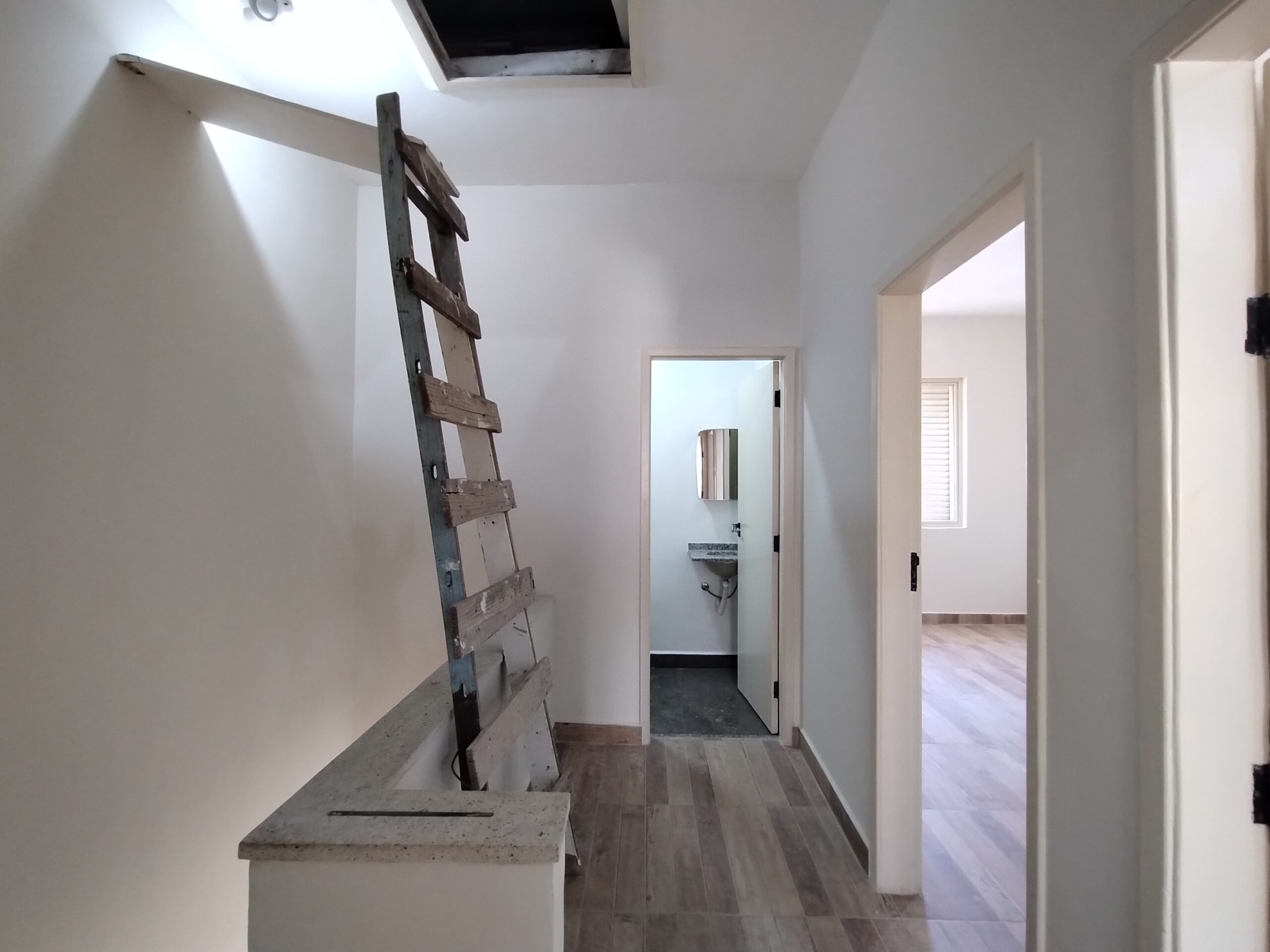 PISO SUPERIOR: HALL DE DISTRIBUIÇÃO, 03 SALAS (02 COM BANHEIROS) E BANHEIRO SOCIAL.